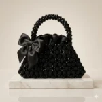 تُزيّنها فيونكة ساتان كبيرة تضيف لمسة رومانسية جذابة، بينما يمنحها المقبض المصنوع من الخرز نفس الهوية الفاخرة للحقيبة. تصميم مثالي للسهرات والمناسبات التي تتطلب حضورًا أنيقًا وهادئًا في نفس الوقت.