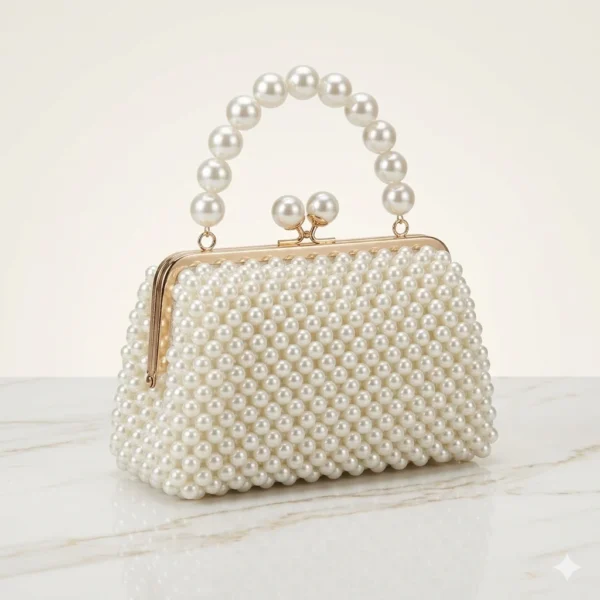 د.ج0اختاري الأناقة الخالدة مع هذه الحقيبة الفاخرة المغطاة بالكامل بحبات اللؤلؤ اللامعة، تصميم يعكس الرقي الكلاسيكي بأسلوب عصري راقٍ.